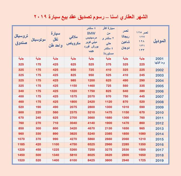 مارشدير جدول تعرف على رسوم توثيق عقود بيع السيارات في الشهر العقاري عام 2019