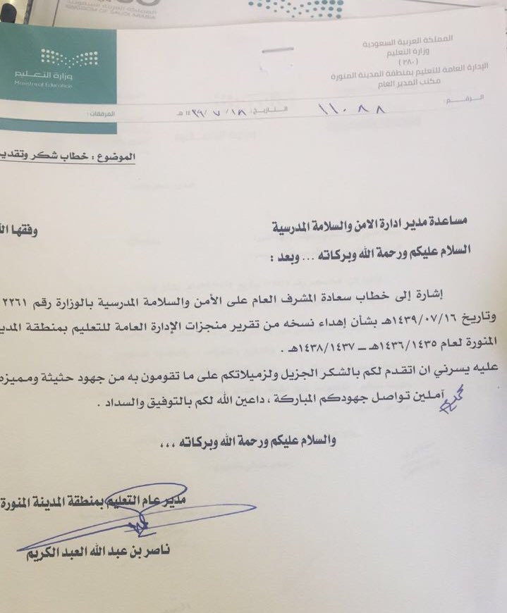سالم العمري خبير نظام المقررات Pa Twitter خطاب شكر وتقدير من مدير عام التعليم بمحافظة الطائف